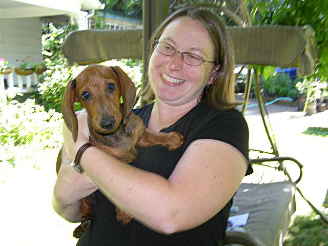 Kirby fell in the cream pot with his new family. New mommy Colleen came to pick Kirby up on Friday and that boy is going to LOVE his new family. A 2 year old boy, another dog, a huge back yard and lots of people who love dachshunds in the family. Perfect!!!